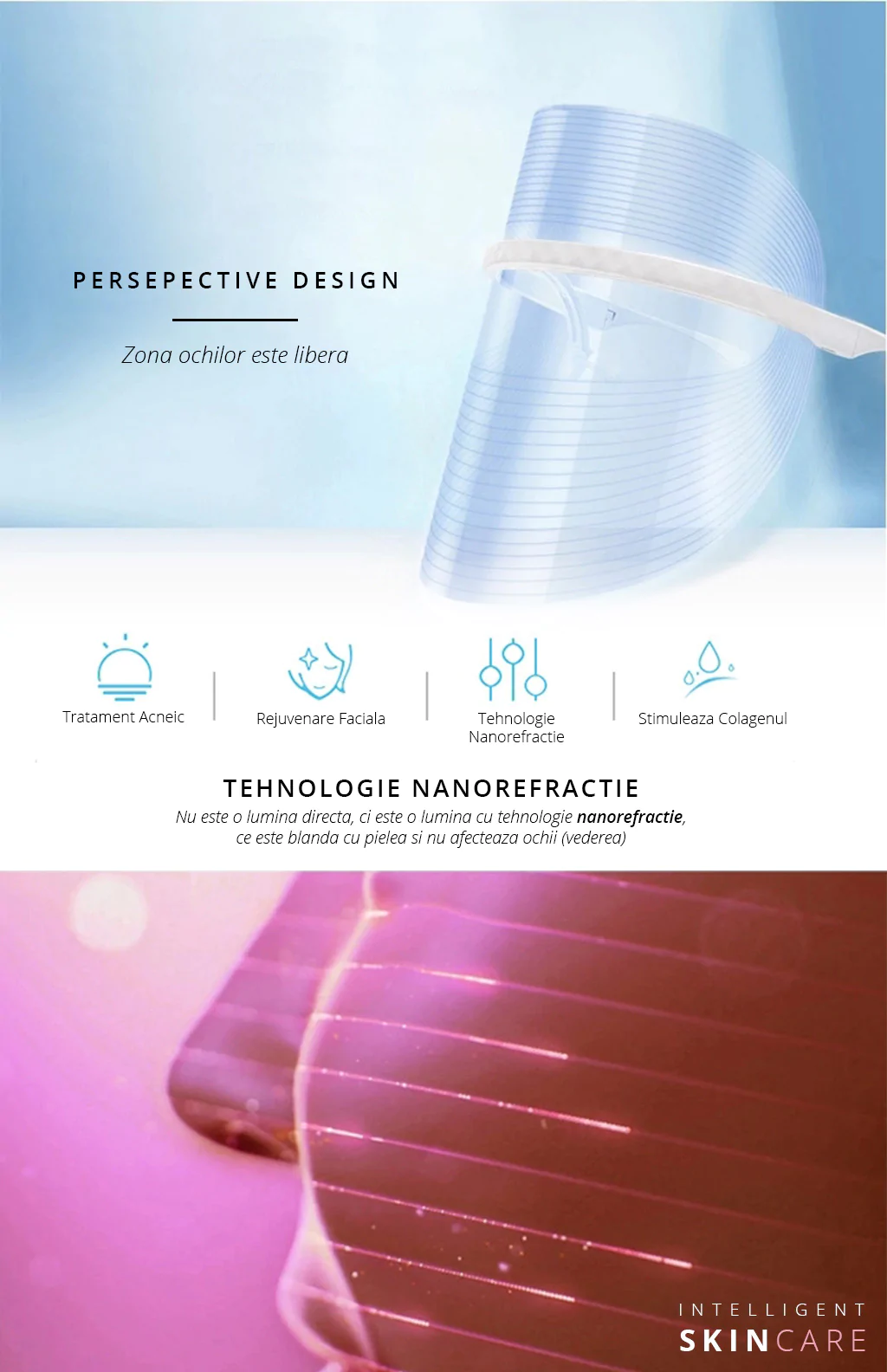 Dispozitivul de infrumusetare cu lumina LED, conceput pentru infrumusetarea fetei, foloseste unde naturale de lumina colorata transmise de LED-uri.
